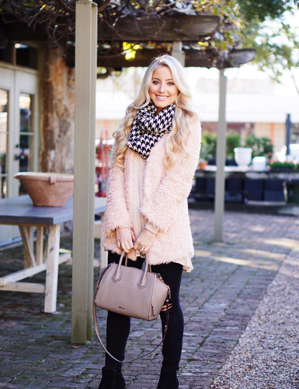 FLUFFY BLUSH JACKET c/o: Shop Sosie | LACE TOP c/o: The Pink Lily Boutique | RIPPED DENIEM: Express (Only $47.94)! | SATCHEL: Rebecca Minkoff | TASSEL Read This Post