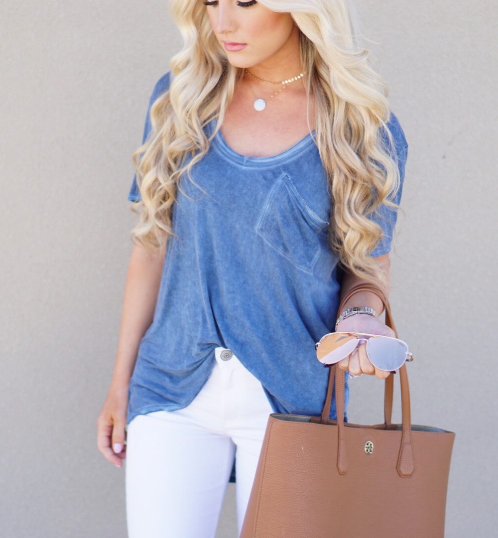 BLUE TOP | WHITE JEANS (Under $80 + buy one pair get one 50% OFF) | WEDGES | TOTE | SUNGLASSES | WATCH | NECKLACE | LIPGLOSS | LIPSTICK | WHAT I USE TO Read This Post